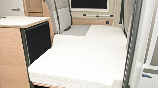 Deze gloednieuwe en compleet uitgeruste buscamper heeft een sterke en zuinige 140pk motor met soepele automaat. In de Carado CV 640 Pro kunnen 3 personen comfortabel slapen. Het ruime 2-persoons lengtebed en 1-persoonsbed (bedombouw) met comfortabele schuimmatrassen zorgen voor een goede nachtrust.